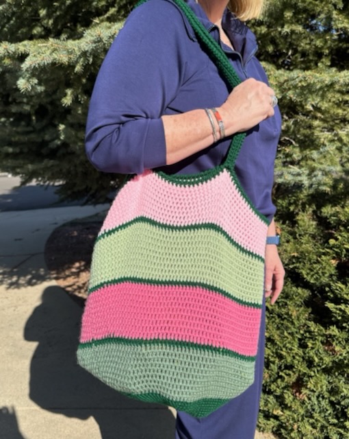 I learned to crochet from my grandmother when I was in my teens, but I put it away as my life as a wife, mother, and high school teacher became busier. Then in 2020, as we all isolated, I needed a project. I brought out my old cross-stitch projects that never got finished and my yarn. Once the news of “No Plastic Bags” came out, I had the perfect project to work on, and Holly Totes started to take shape. At first, I was only making them for myself and for my two sons, but when I would go to the store, the cashiers would love them so much that I would give them one of mine. As more people complimented me on them and wanted to buy them, I decided to start growing my inventory to share with everyone.
