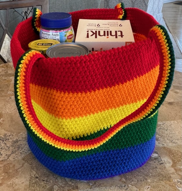 I have used a lot of varieties of colors and variegated designs for my personal bags as I experiment with design choices, but for now, I am offering sport-themed totes, fall and spring color totes, a rainbow tote, and holiday totes. I will also make a custom tote if you have specific colors that you are fond of.