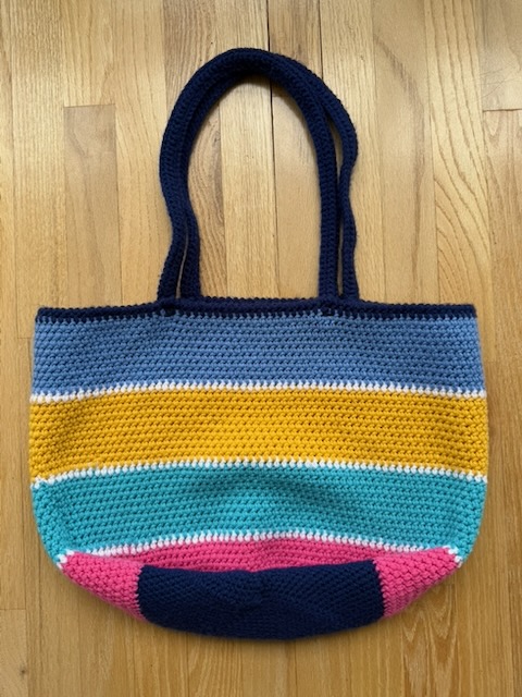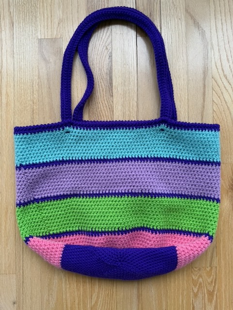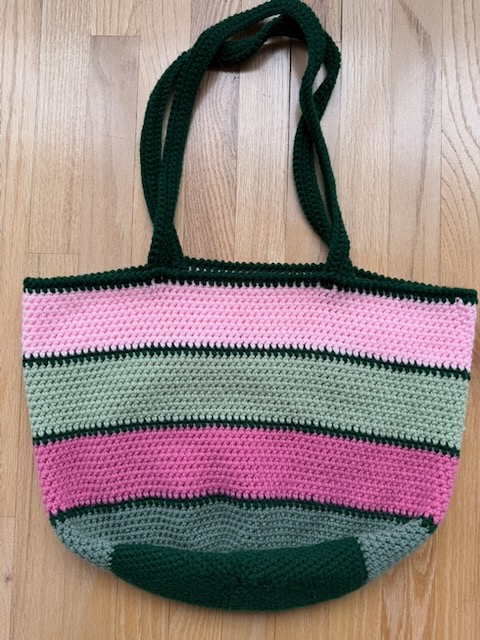 Hand-crafted crocheted tote bags.